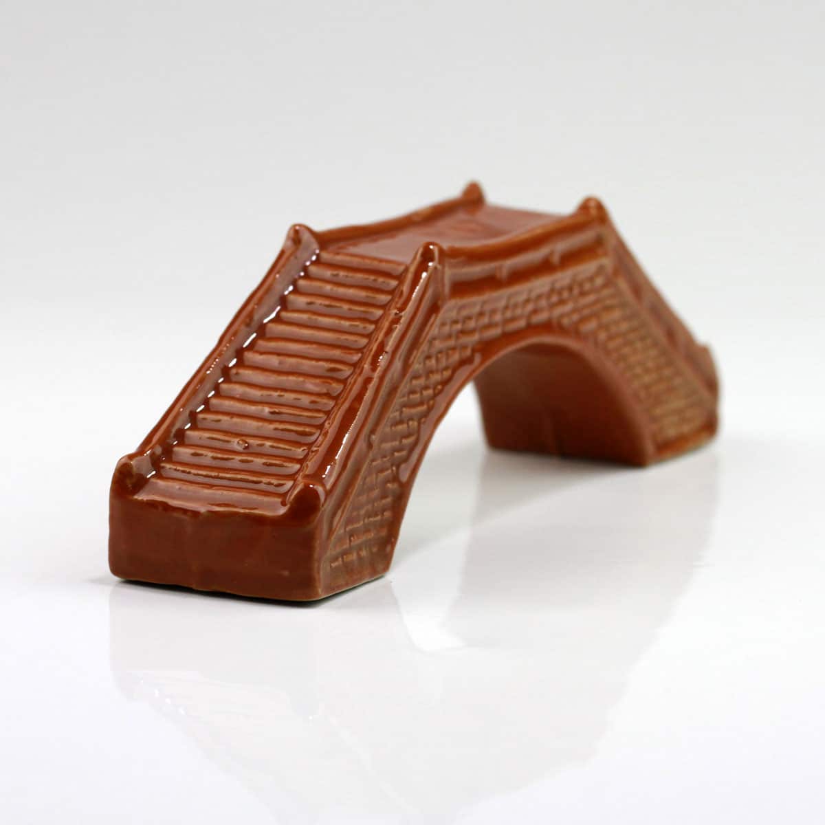 Handgearbeitete im klassischen Stil gehaltene, chinesische Bogenbrücke aus Keramik als schöne Deko-Figur für Ihren Garten, Ihre Terrasse oder Ihr Zuhause.