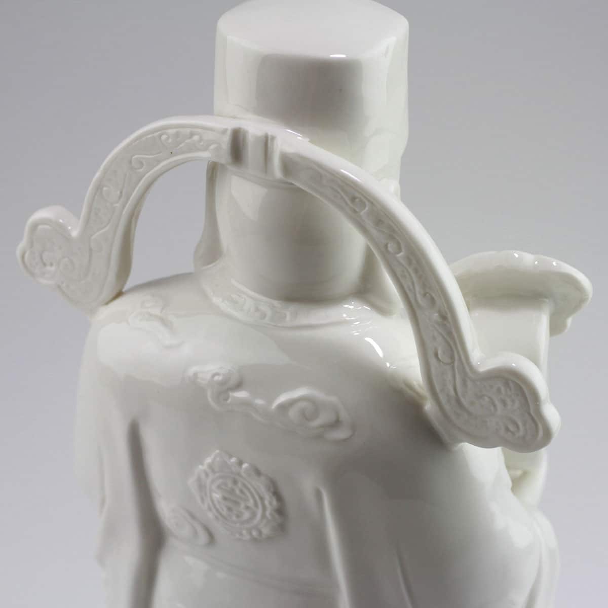 Der charakteristische Farbton des Blanc de Chine macht die aus ihm gefertigten Figuren unverwechselbar und harmoniert ausgezeichnet mit der friedvollen und majestätischen Ausstrahlung der buddhistischen und aus der Mythenwelt Chinas stammenden Motive.