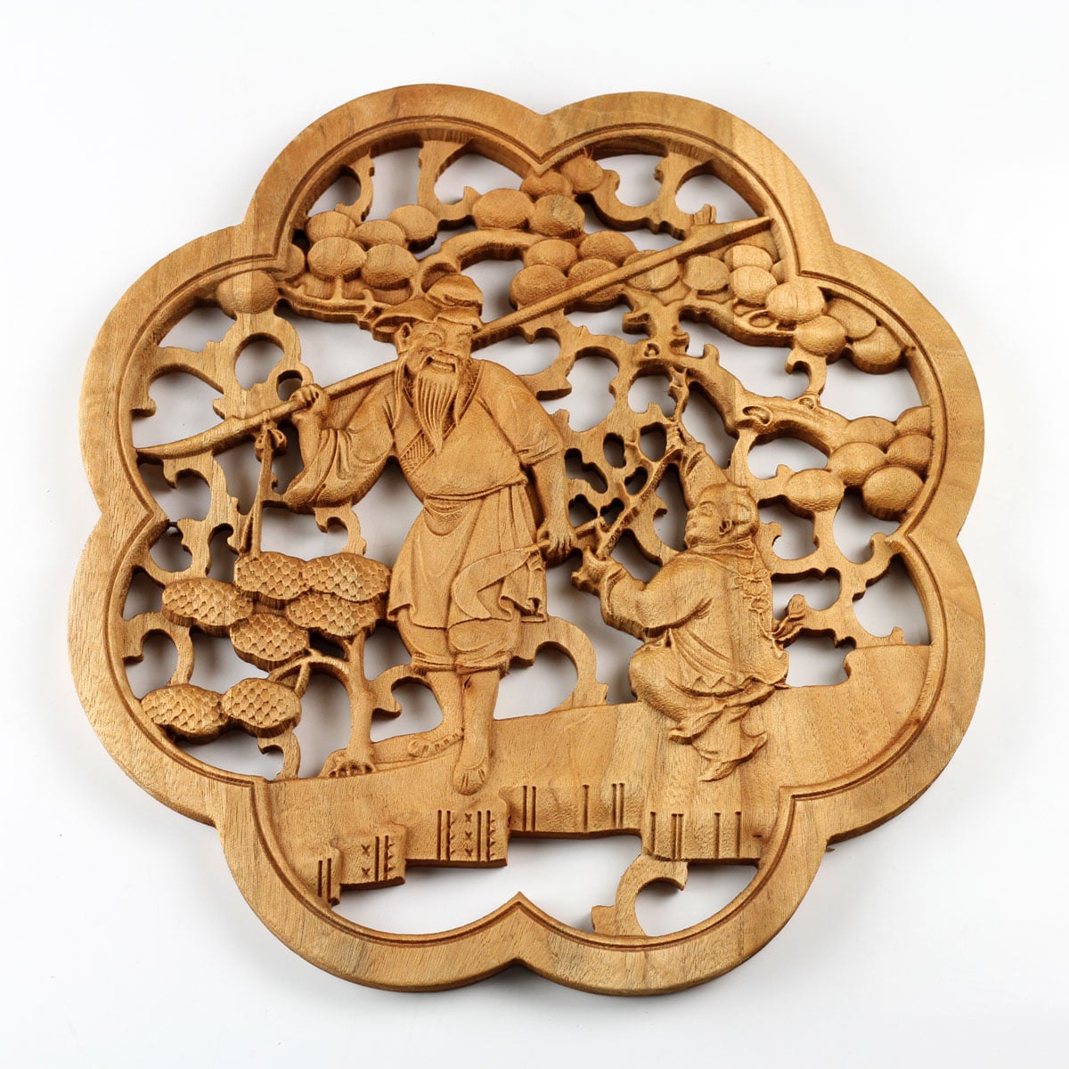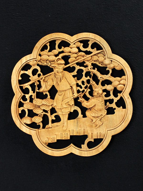 Chinesisches Holzbild mit klassischem Motiv als stilvolles Wandornament für fernöstliche Atmosphäre in Ihrem Zuhause.