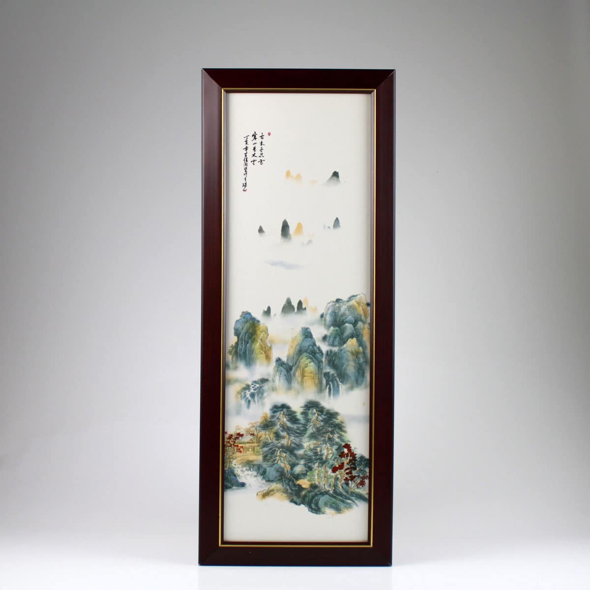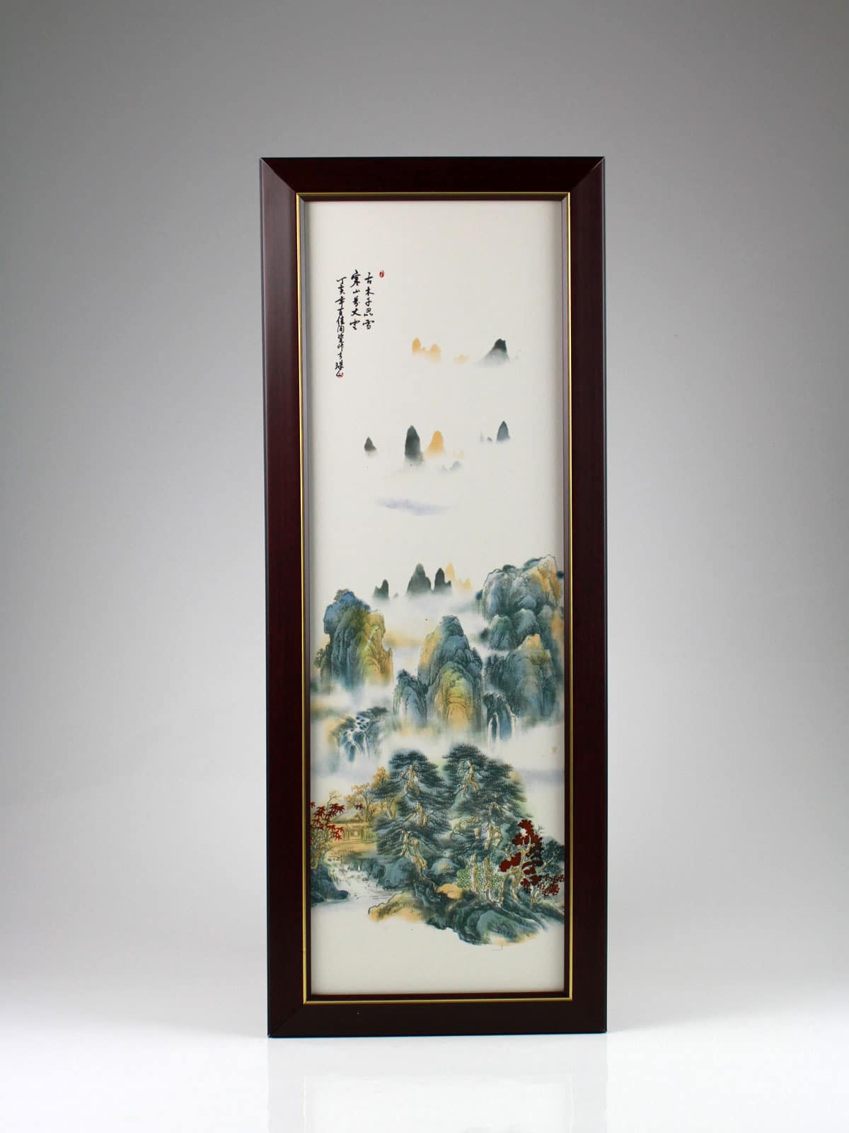 Bei Keramik Wandbildern dieser Art wird zunächst das Grundmotiv auf die Porzellan-Fliese aufgedruckt. Die Nachbearbeitung und Nachcolorierung bzw. die Signierung erfolgt von Hand, bevor das Porzellanbild glasiert und danach gebrannt wird. Die traditionellen asiatischen Motive sind oftmals bekannte Repliken aus der chinesischen Kunstgeschichte, gemalt von bedeutenden Künstlern. Weltberühmte Naturszenarien der chinesischen Landschaftsmalerei, asiatische Pflanzen und Gewächse, historische Szenen oder traditionelle Bauten prägen kunstvoll und ästhetisch die chinesischen Bilder.