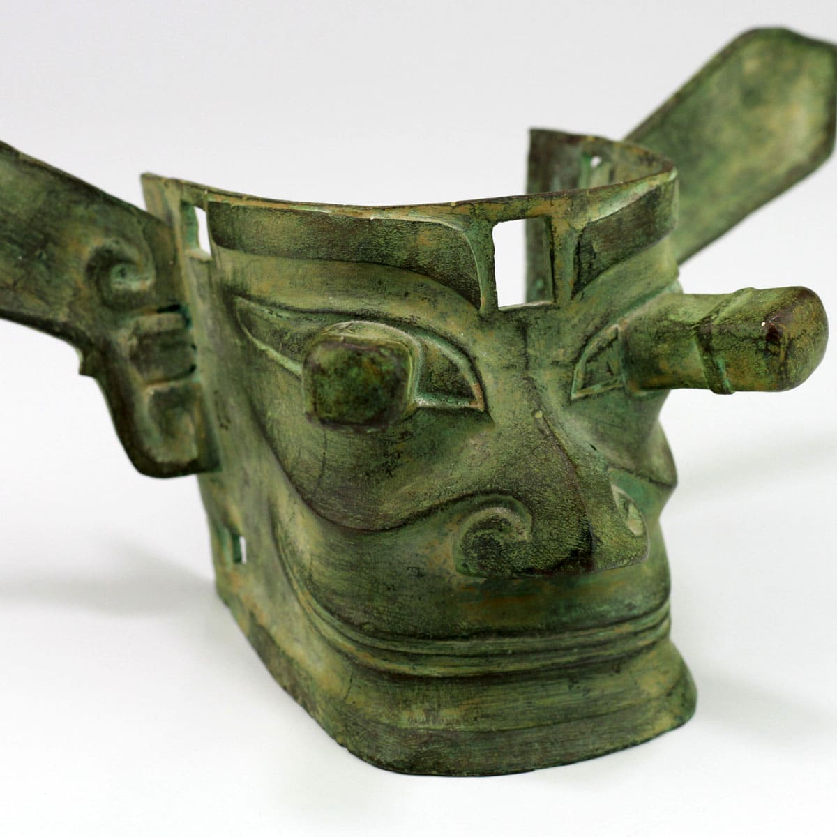 Diese eindrucksvollen und einzigartigen Funde der chinesischen Masken und Bronzeköpfe aus der frühen Shu-Kultur der Shang- und Zhou-Zeit ( 2800–800 v. Chr.) waren übergroß, teils vergoldet oder bemalt und sollen dem Ahnenkult gedient haben.