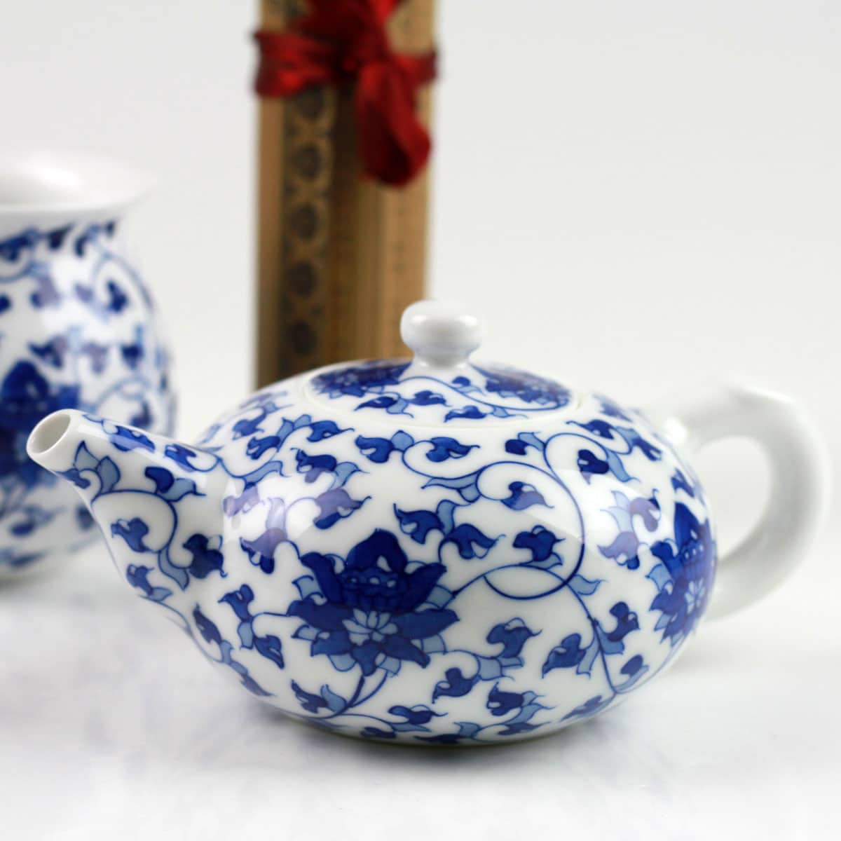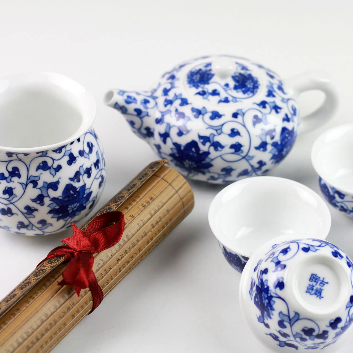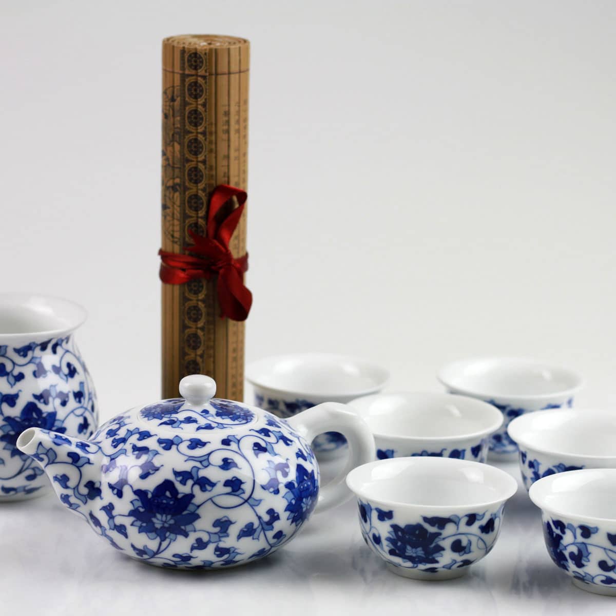Dieses einzigartige 8-teilige Teeservice, das zusätzlich einen traditionellen Unterleger enthält, senden wir Ihnen in einer dekorativen, sehr stilvollen Box, die mit feinem Stoff überzogen ist. Das Motiv der Lotusblume bringt noch mehr Ruhe in Ihre persönliche Teestunde.