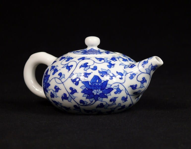 Chinesisches Teeservice „Lotusblume“, blau-weißes Porzellan handbemalt