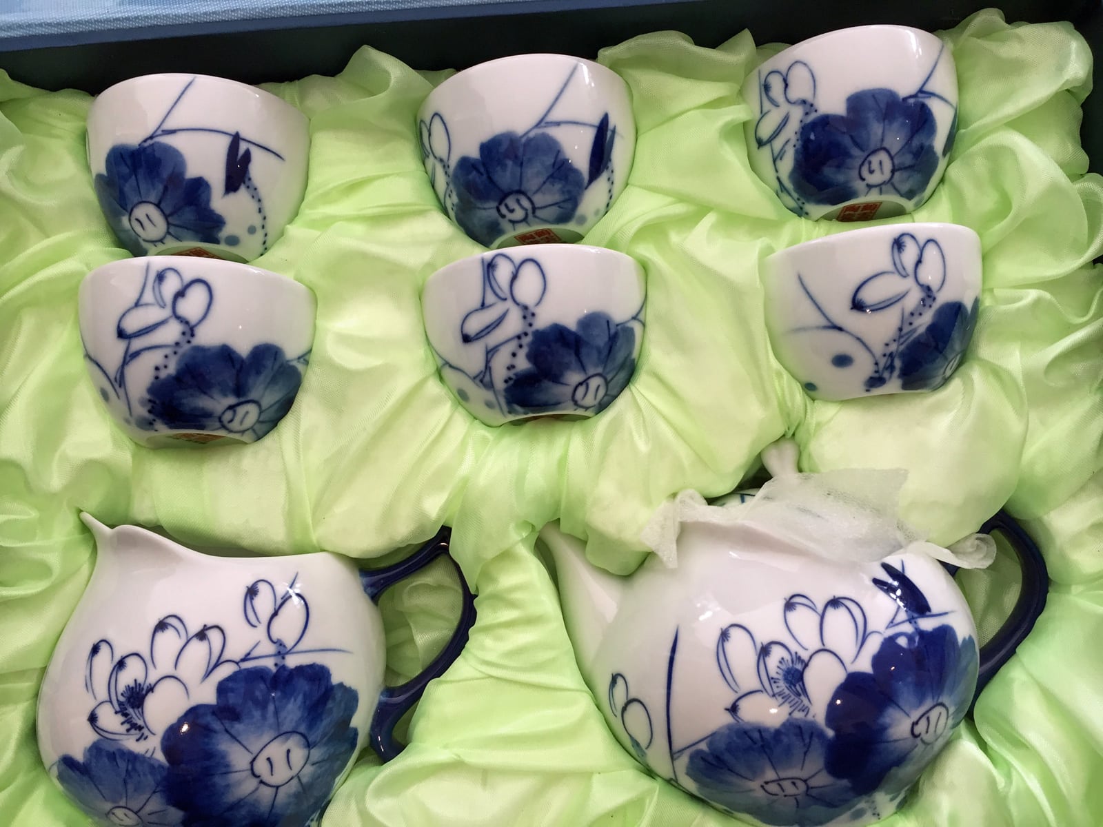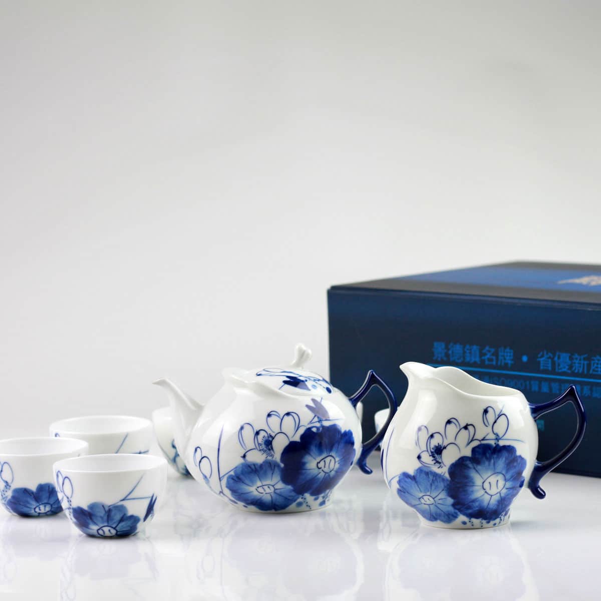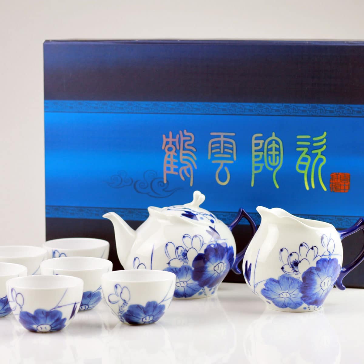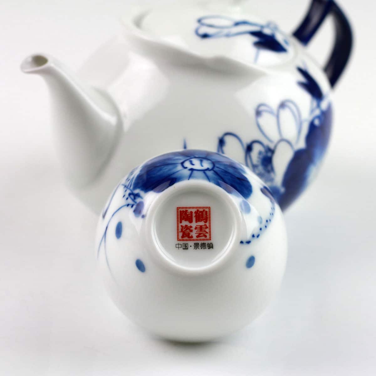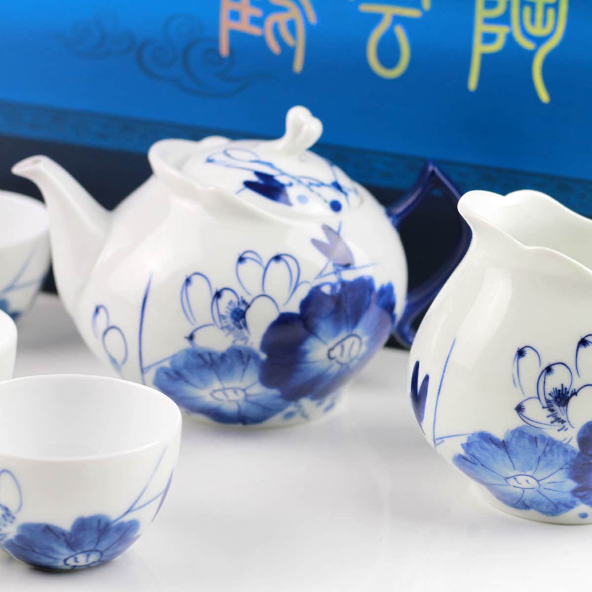 Porzellan-Teeservice, chinesische Teekultur, blau-weißes Porzellan, handbemaltes Unikat