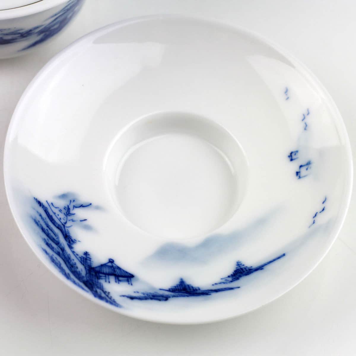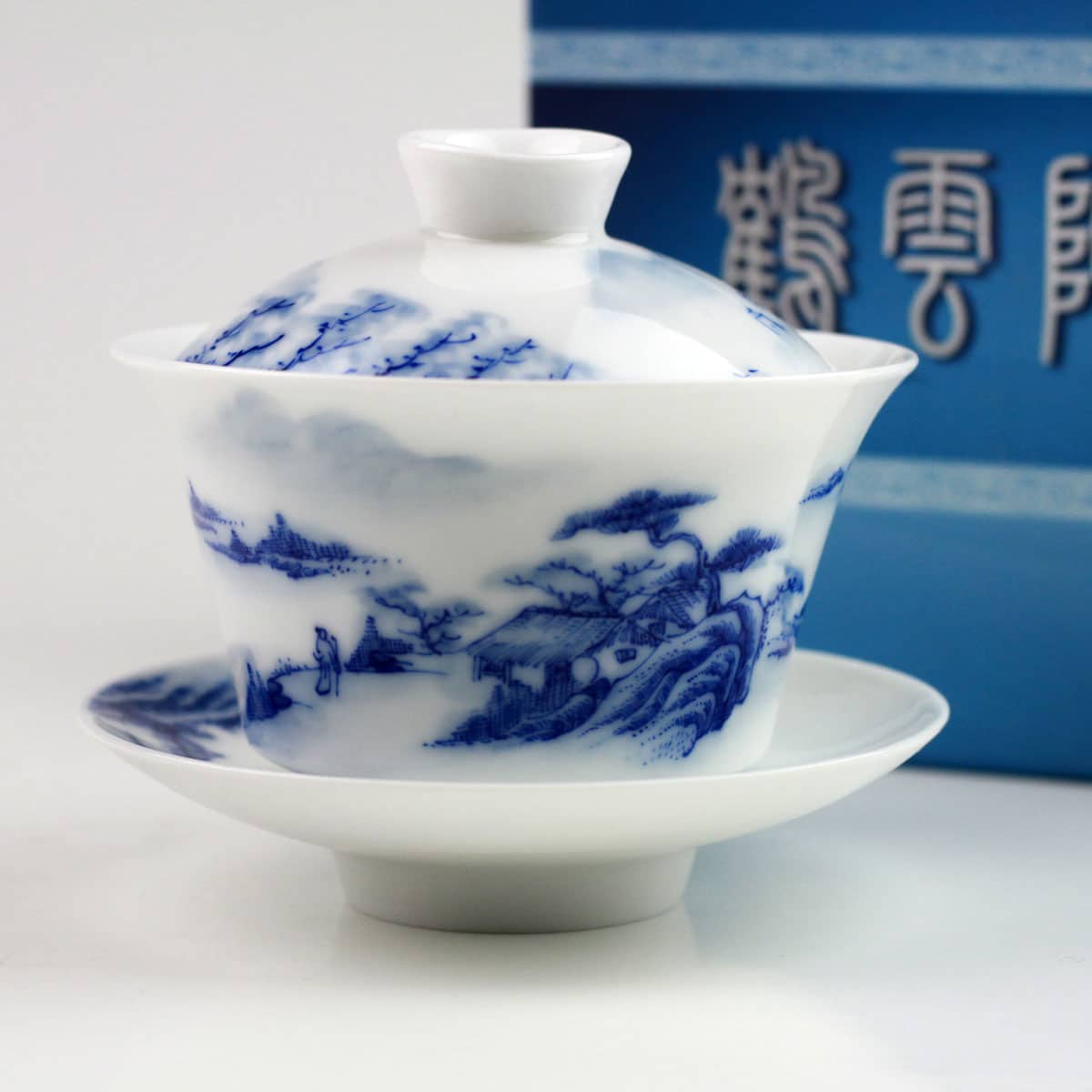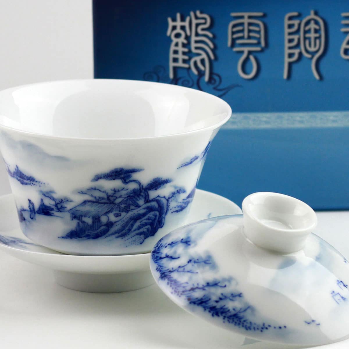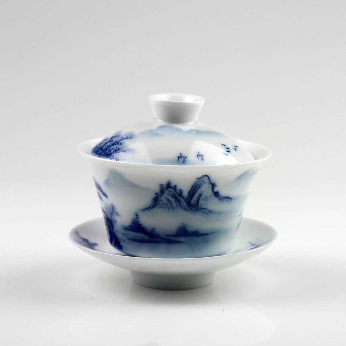 Chinesischer Gaiwan/Gaibei, Deckeltasse Porzellan blau-weiß, asiatische Teekultur