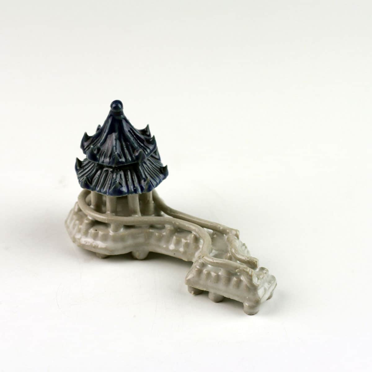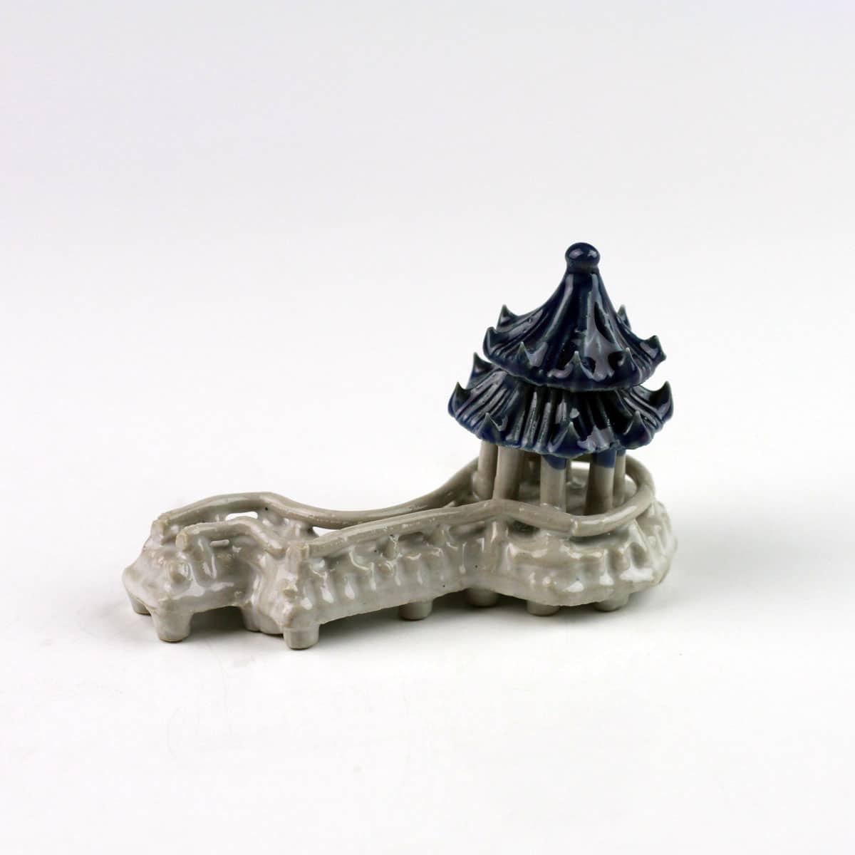 Eine handgearbeitete Miniaturdarstellung von einem chinesischen Teehaus mit Zickzack-Brücke, wie man sie in der faszinierenden fernöstlichen Landschaftsarchitektur vorfindet, als schöne, asiatische Deko-Figur für Ihren Garten, Teich, Brunnen oder Ihr Zuhause.