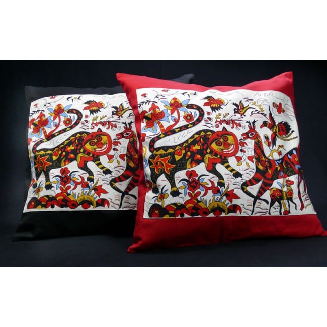 Das Motiv des Tigers steht für Mut und Tapferkeit. Der Hirsch ist ein Symbol für Reichtum und Langlebigkeit. Die Tiere wurden detailverliebt auf den Kissenbezügen verarbeitet mit kräftigen und lebendigen Farben. Die Kissenbezüge sind aus angenehmem, griffigem Stoff mit verdecktem Reißverschluss.