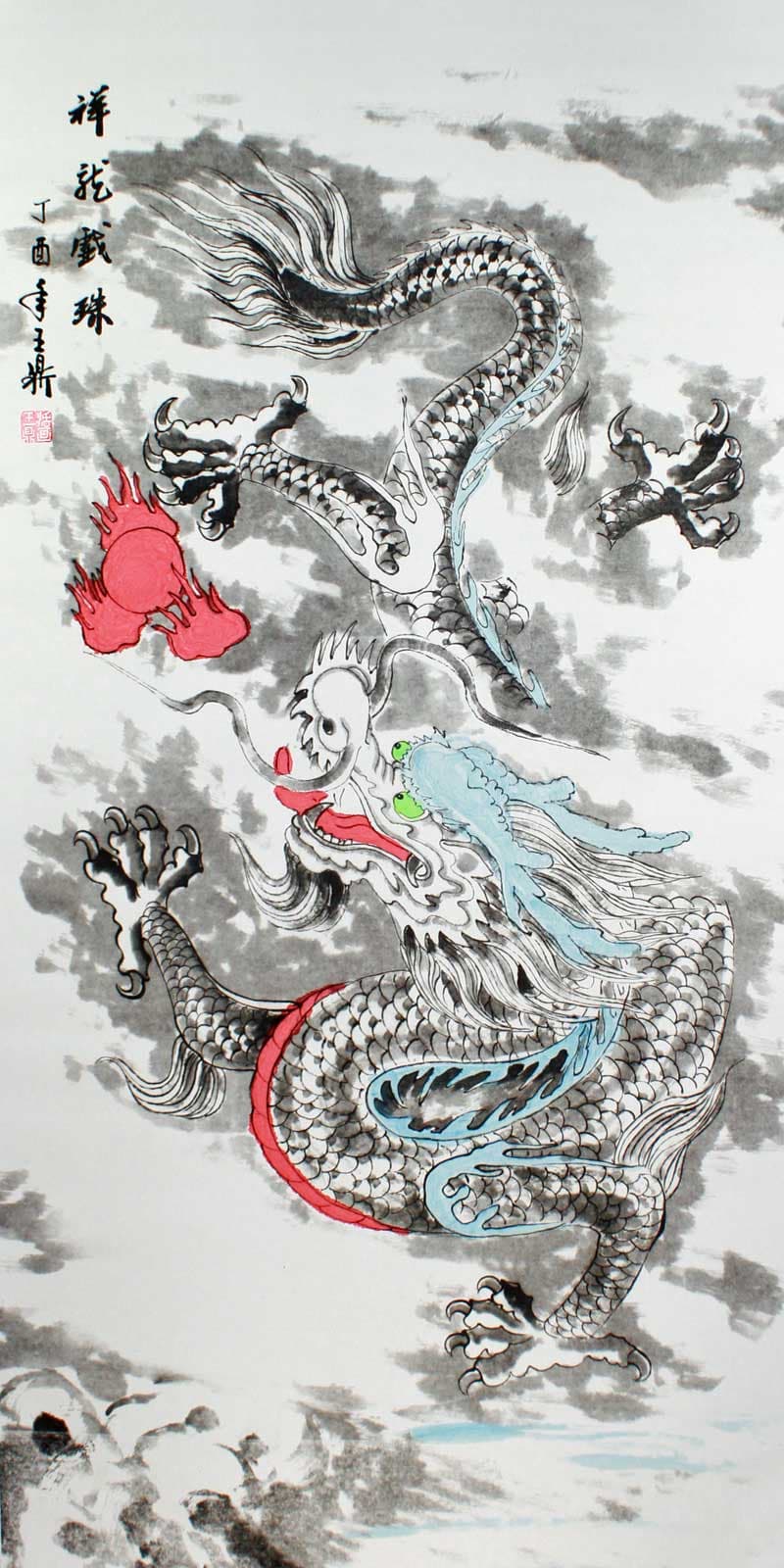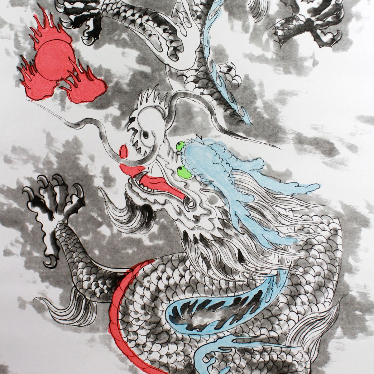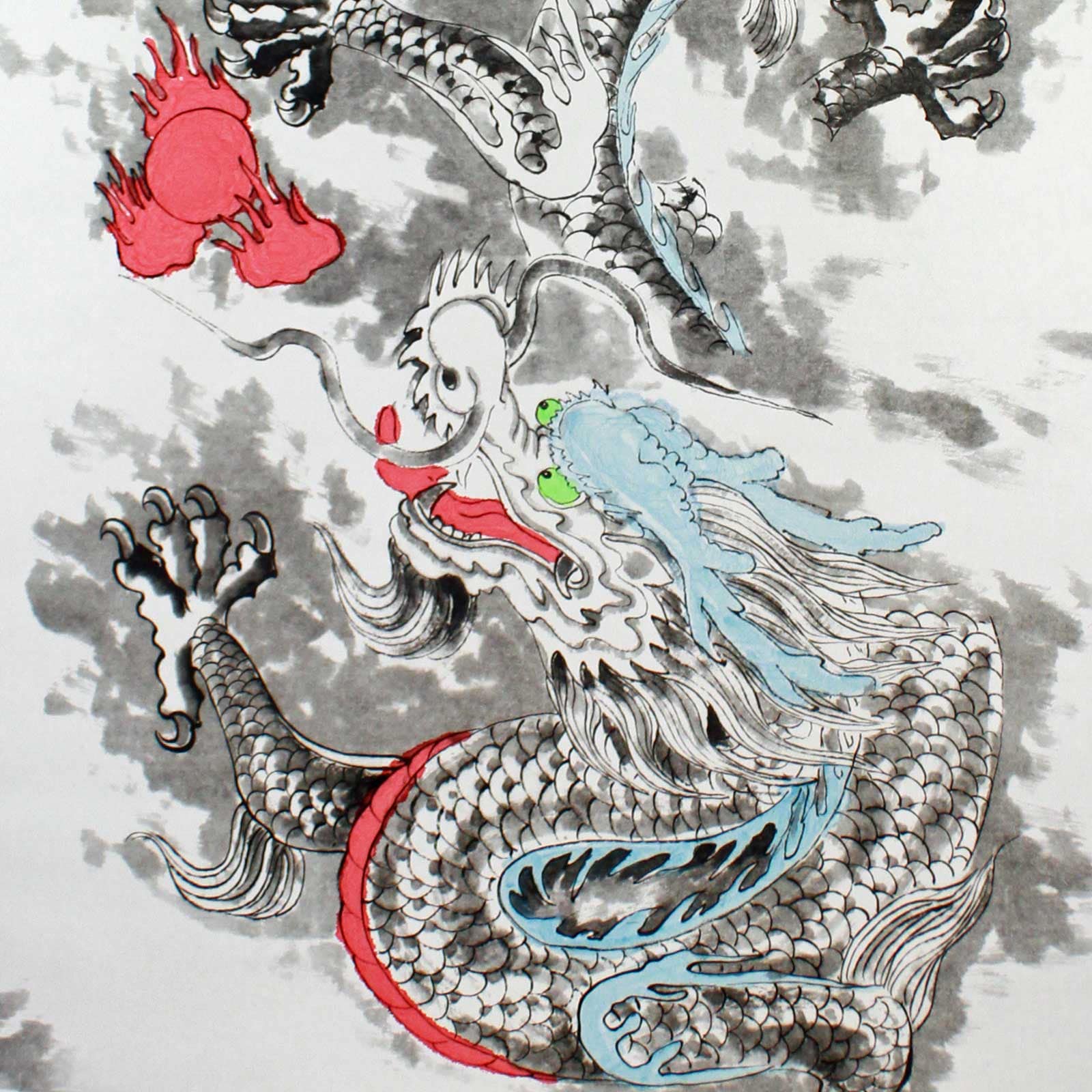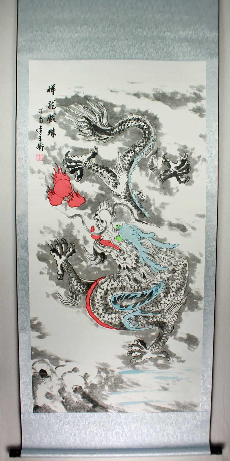 Chinesische Malerei Rollbild, asiatische Bildrolle, chinesischer Drache, Hängerolle