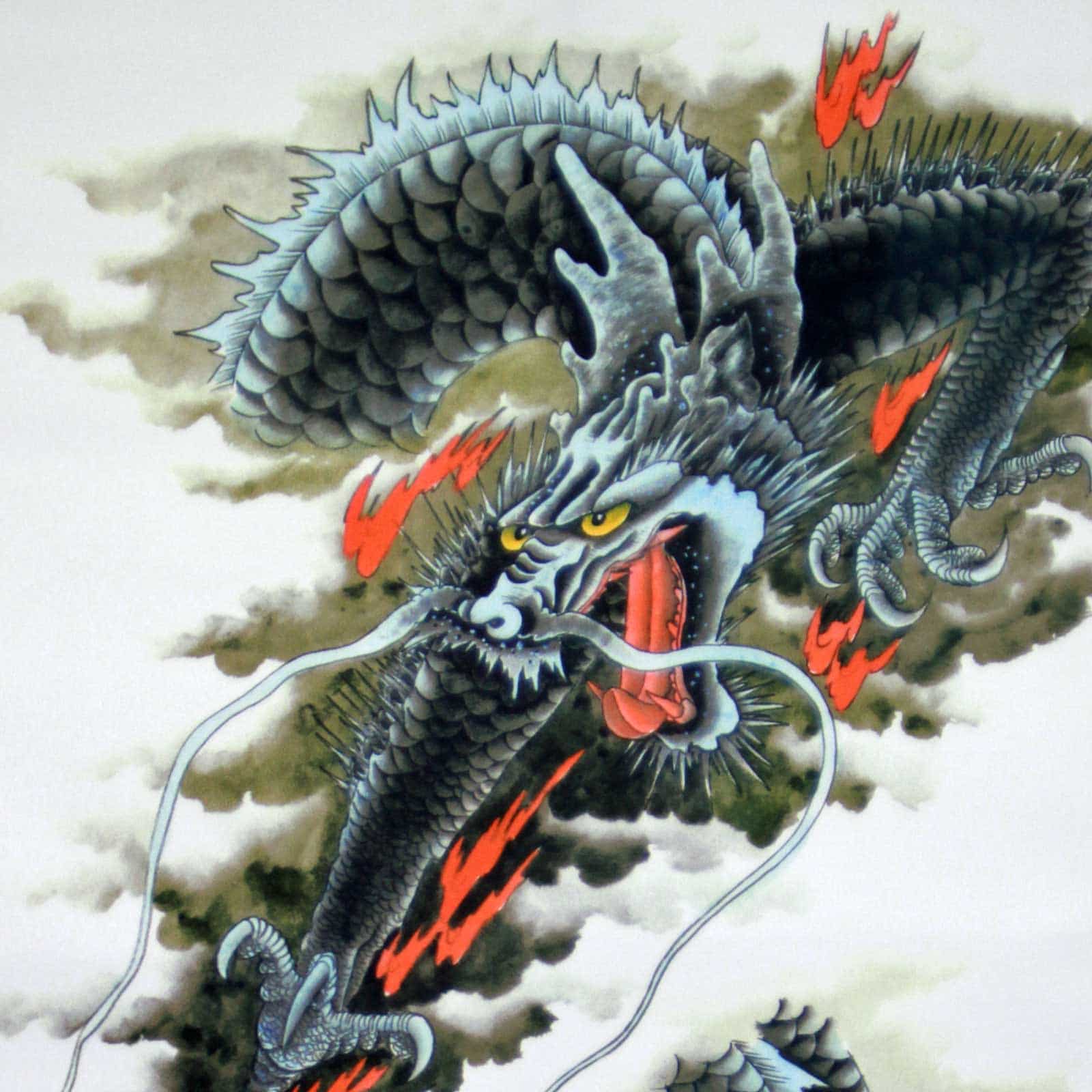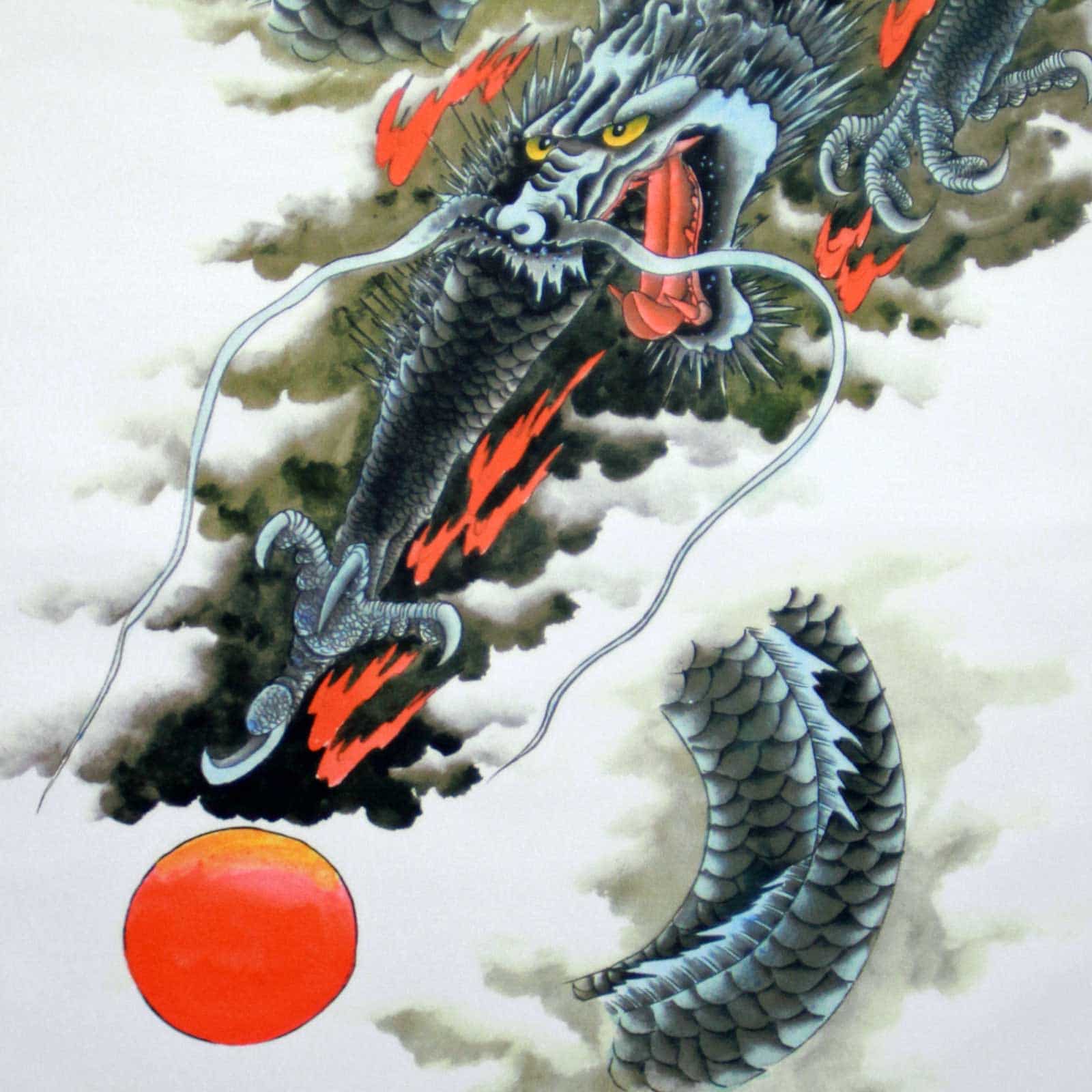 Darstellung des asiatisch-mythoogischen Drachen im japanischen Stil.