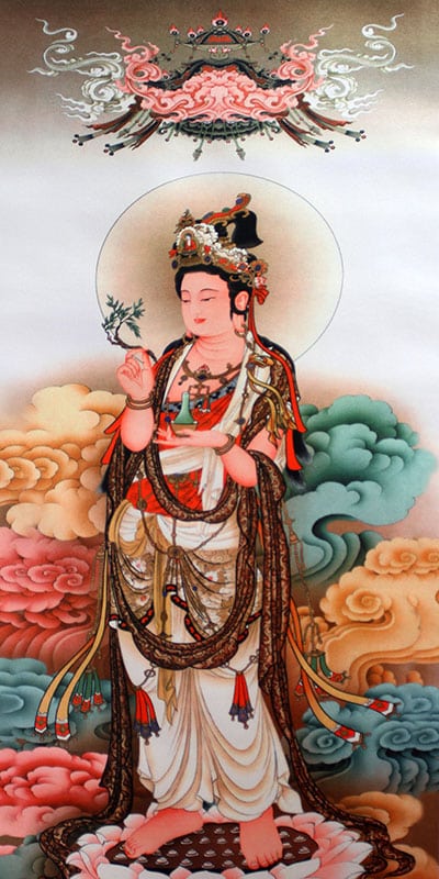 Ein Bodhisattva ist ein bereits erleuchtetes Wesen, das jedoch aus eigenem freien Willen noch nicht ins Nirvana eintritt, um aus Mitgefühl den anderen Lebewesen den Weg zur Erleuchtung zu zeigen. Deswegen wird Guanyin auch als Bodhisattva des Mitgefühls bezeichnet.