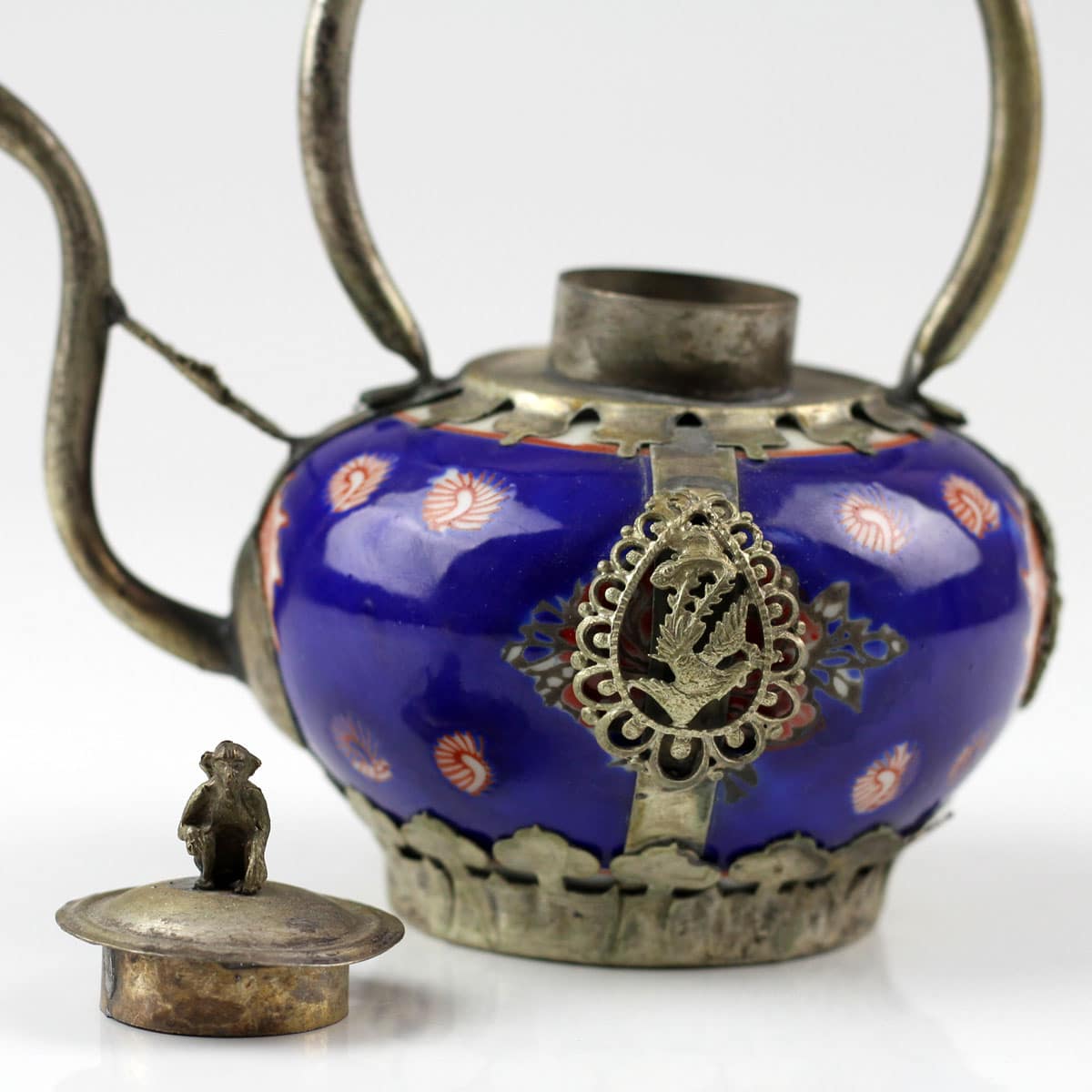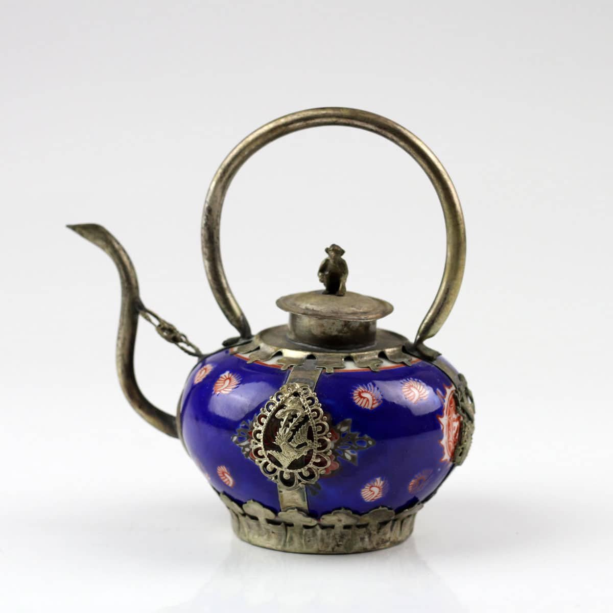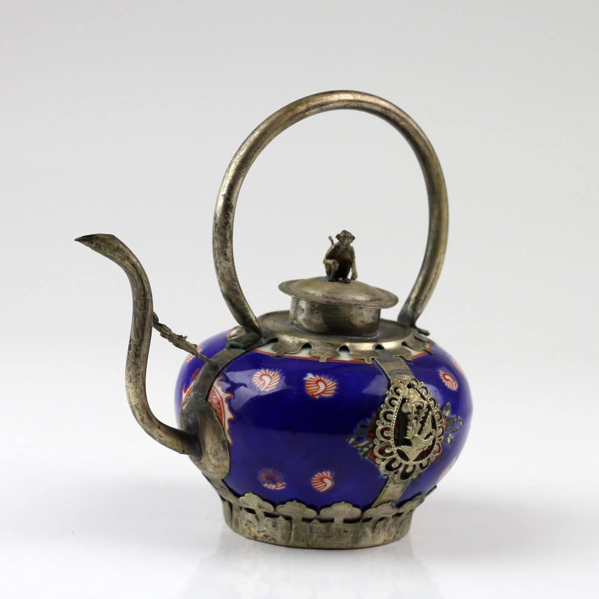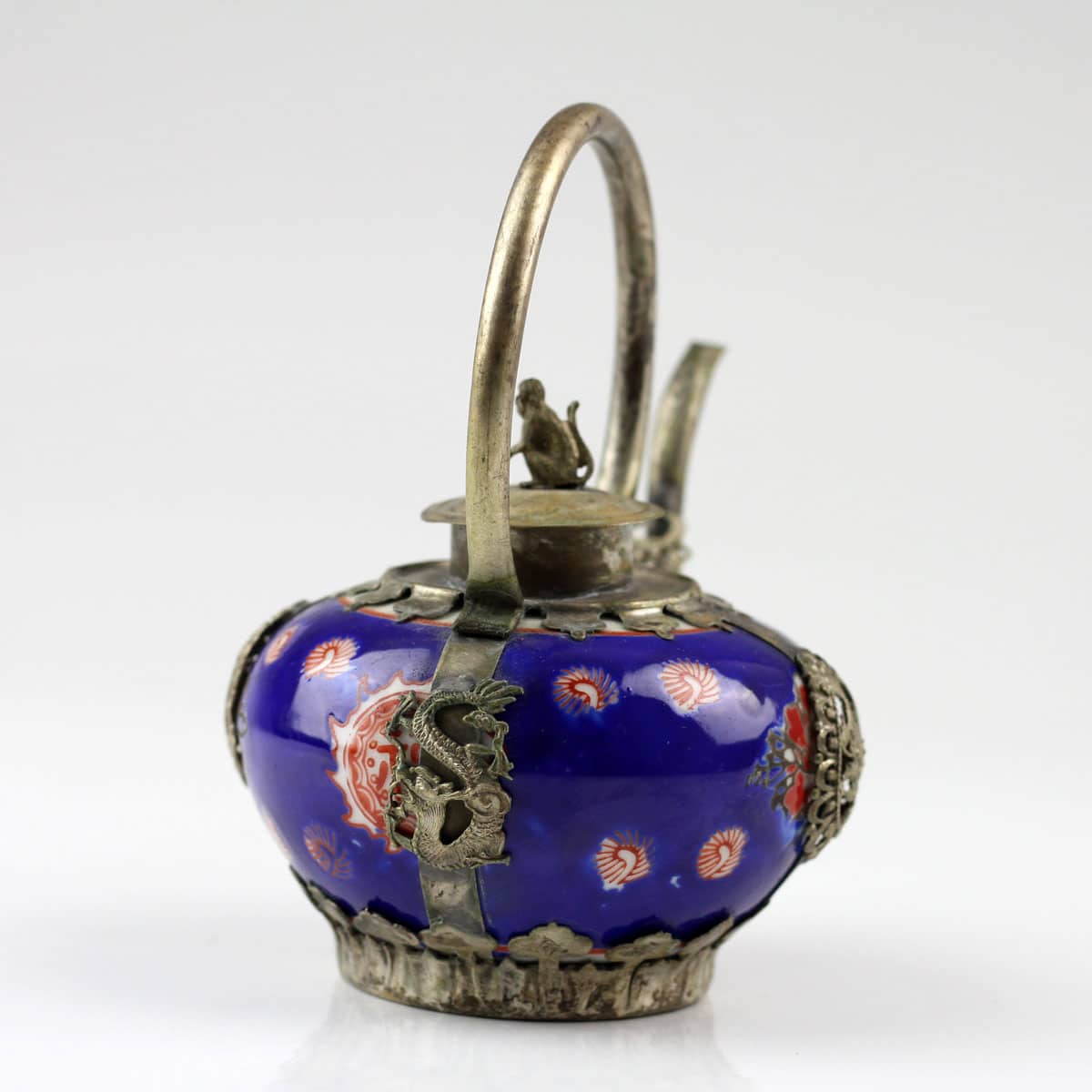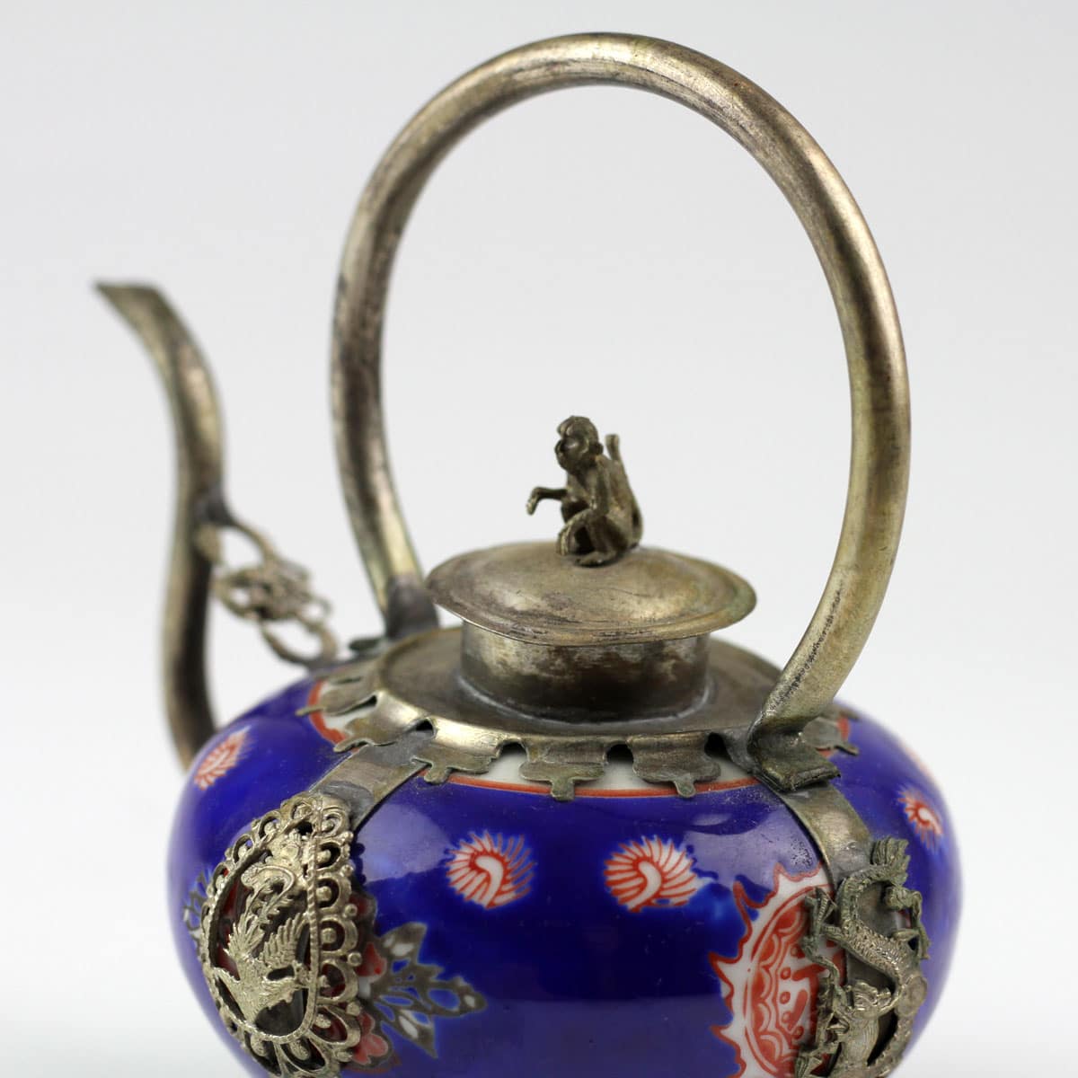Porzellankännchen mit Bogenhenkel, chinesische Teekanne, asiatisches Dekorationsobjekt