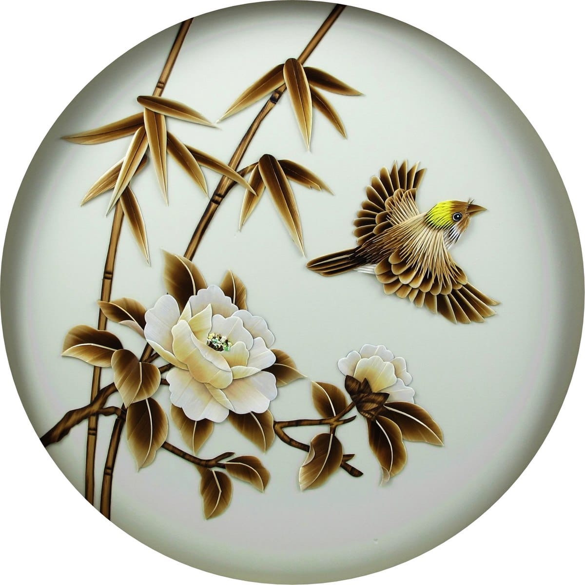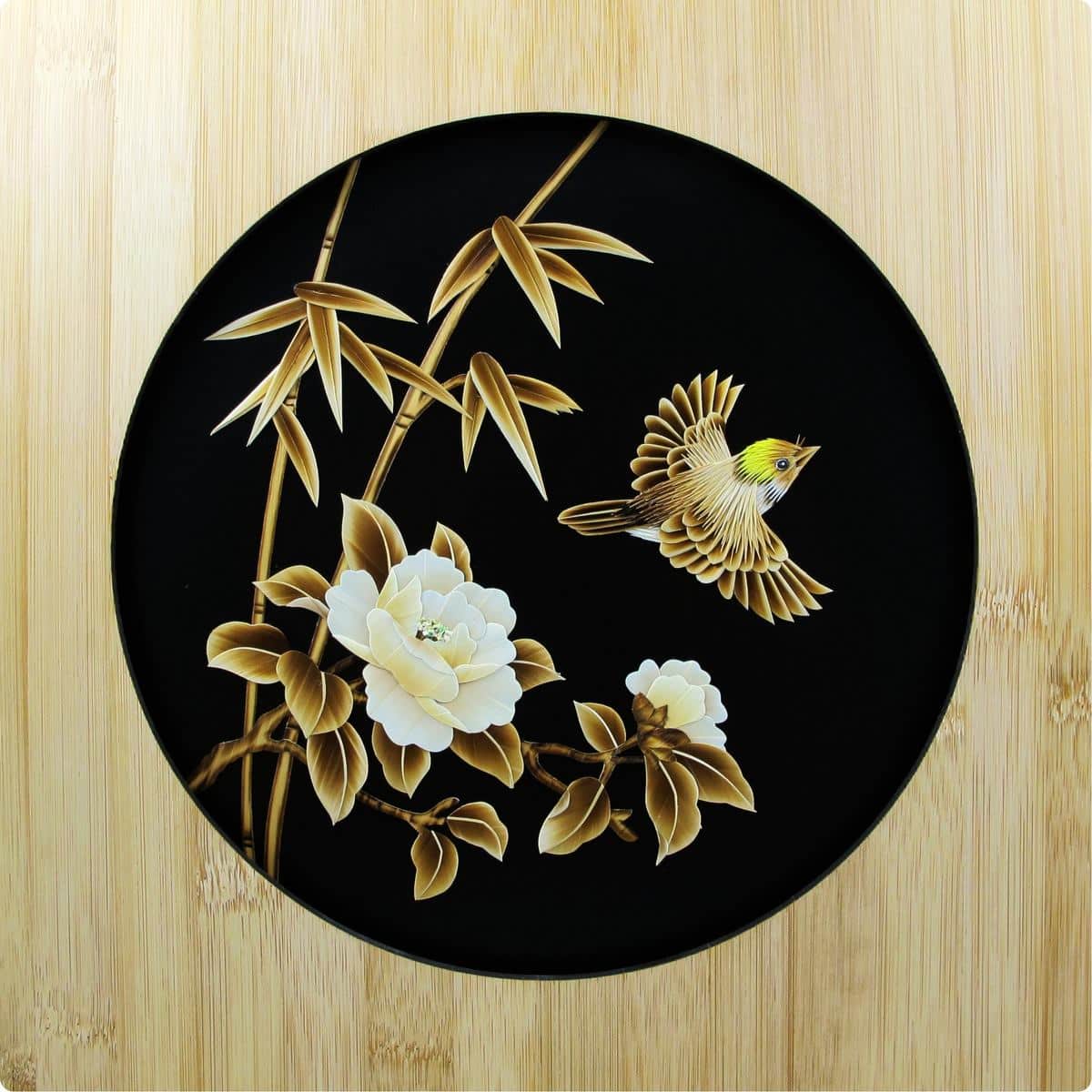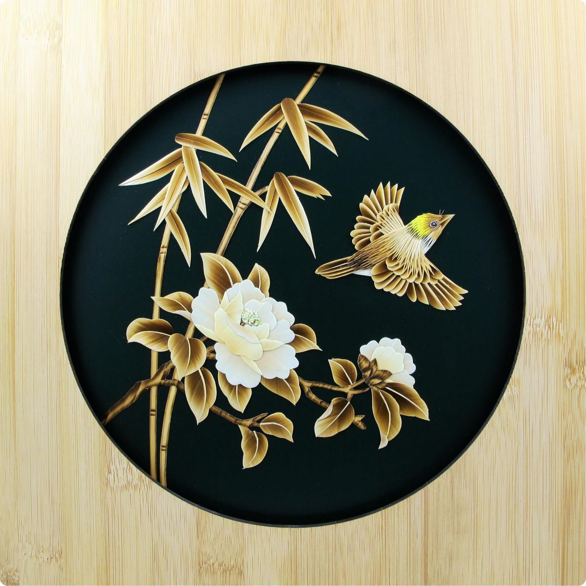 Die filigranen Motive können mit verschiedenen Hintergrundfarben kombiniert werden. Sie haben dadurch freie Farbauswahl und können passend zu Ihrer Einrichtung die für Sie ansprechendste Kombination wählen (bitte unten angeben). Je nach der gewählten Hintergrundfarbe erzielen die Motive im Auge des Betrachters eine ganz unterschiedliche Wirkung; das Spiel der Kontraste schafft in jedem Raum eine einzigartige Atmosphäre. Ein extra in reiner Handarbeit angefertigter, hochwertiger Bambusholzrahmen aus der Region Anji mit eingesetztem Glas zum Schutz der Naturbilder rundet diese einzigartigen Kunstwerke ab.