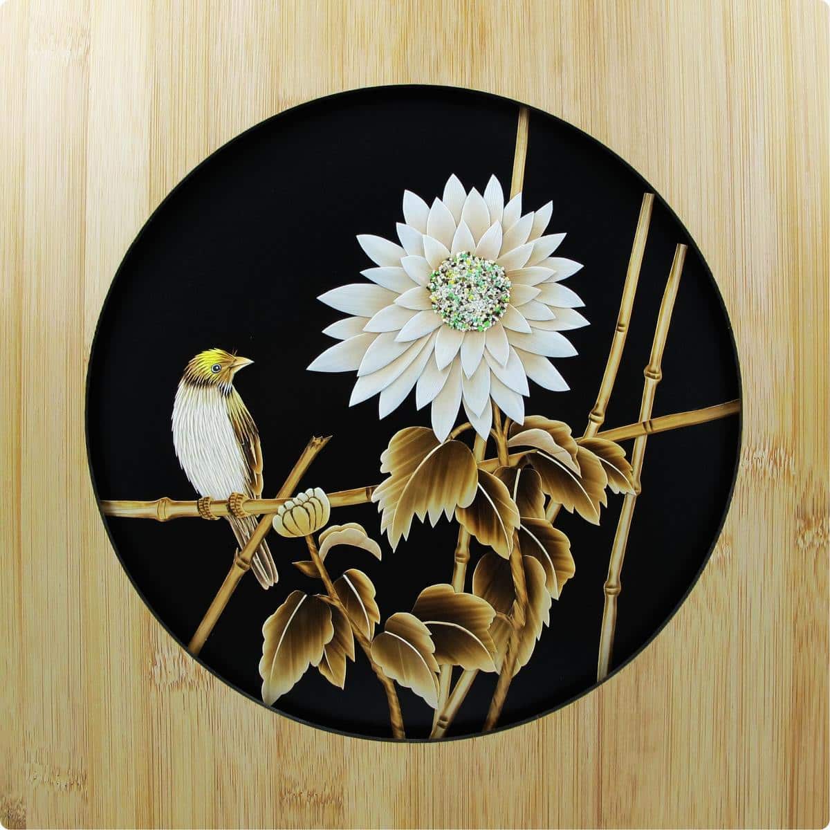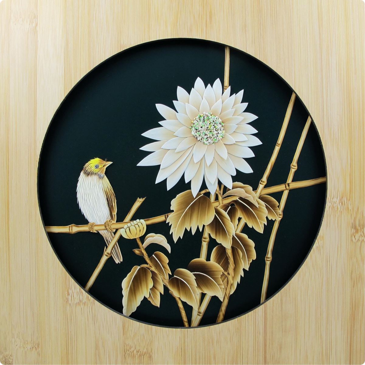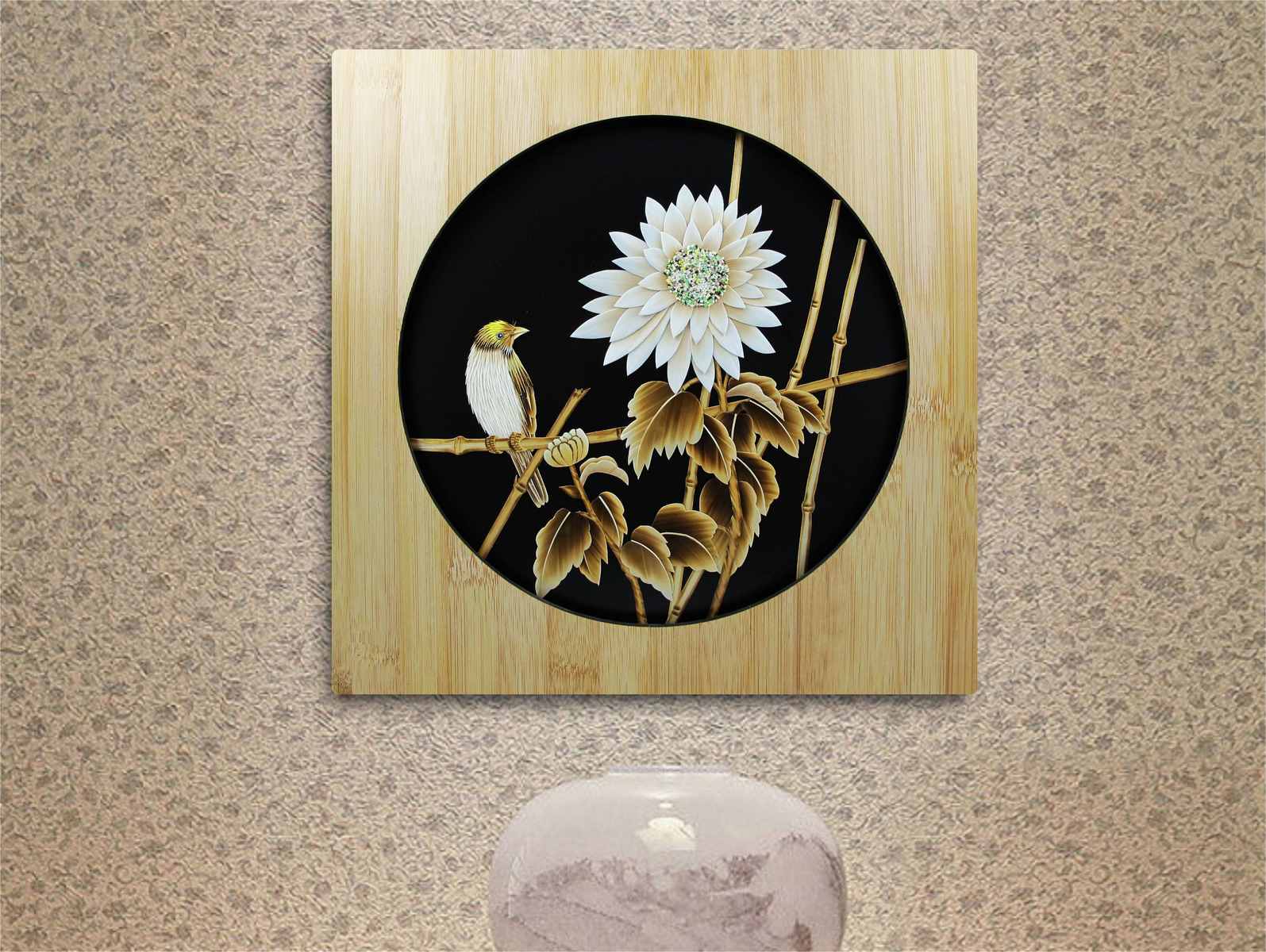 Die filigranen Motive können mit verschiedenen Hintergrundfarben kombiniert werden. Sie haben dadurch freie Farbauswahl und können passend zu Ihrer Einrichtung die für Sie ansprechendste Kombination wählen (bitte unten angeben). Je nach der gewählten Hintergrundfarbe erzielen die Motive im Auge des Betrachters eine ganz unterschiedliche Wirkung; das Spiel der Kontraste schafft in jedem Raum eine einzigartige Atmosphäre. Ein extra in reiner Handarbeit angefertigter, hochwertiger Bambusholzrahmen aus der Region Anji mit eingesetztem Glas zum Schutz der Naturbilder rundet diese einzigartigen Kunstwerke ab.