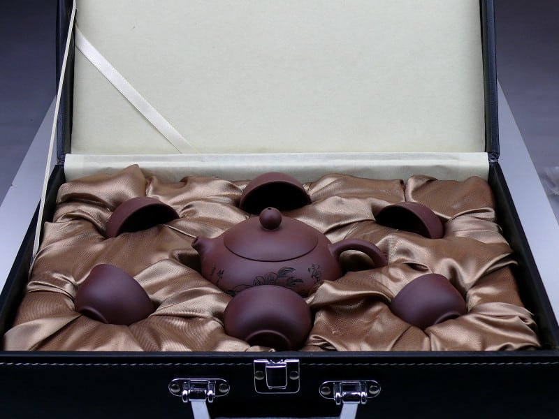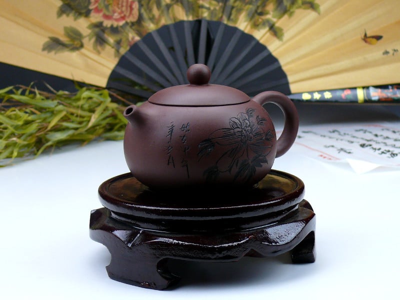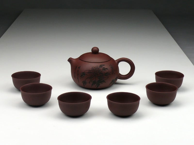 Die in früheren Zeiten schlicht gehaltenen Teekannen aus Yixing wurden seit der mandschurischen Qing-Dynastie (1644-1912) mit immer aufwendigeren Gravuren verziert. Gelehrte und Schriftsteller lieferten die Vorlagen für die Gravuren in Form von kurzen Gedichten und Texten. Später kamen zu den inzwischen in Kalligraphie eingravierten Schriftzeichen auch klassische Bildmotive hinzu. Mit der Zeit entwickelte sich die Herstellung der Yixing-Teekannen zum Kunsthandwerk, in dem die Töpfermeister der Stadt miteinander konkurrierten, die schönsten Kannen zu formen.